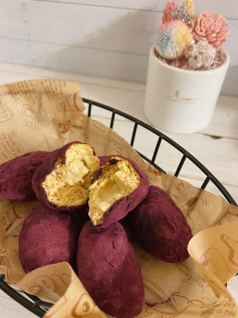 - 若紫薯粉不易附著,可在蛋液與粉中間多滾一圈